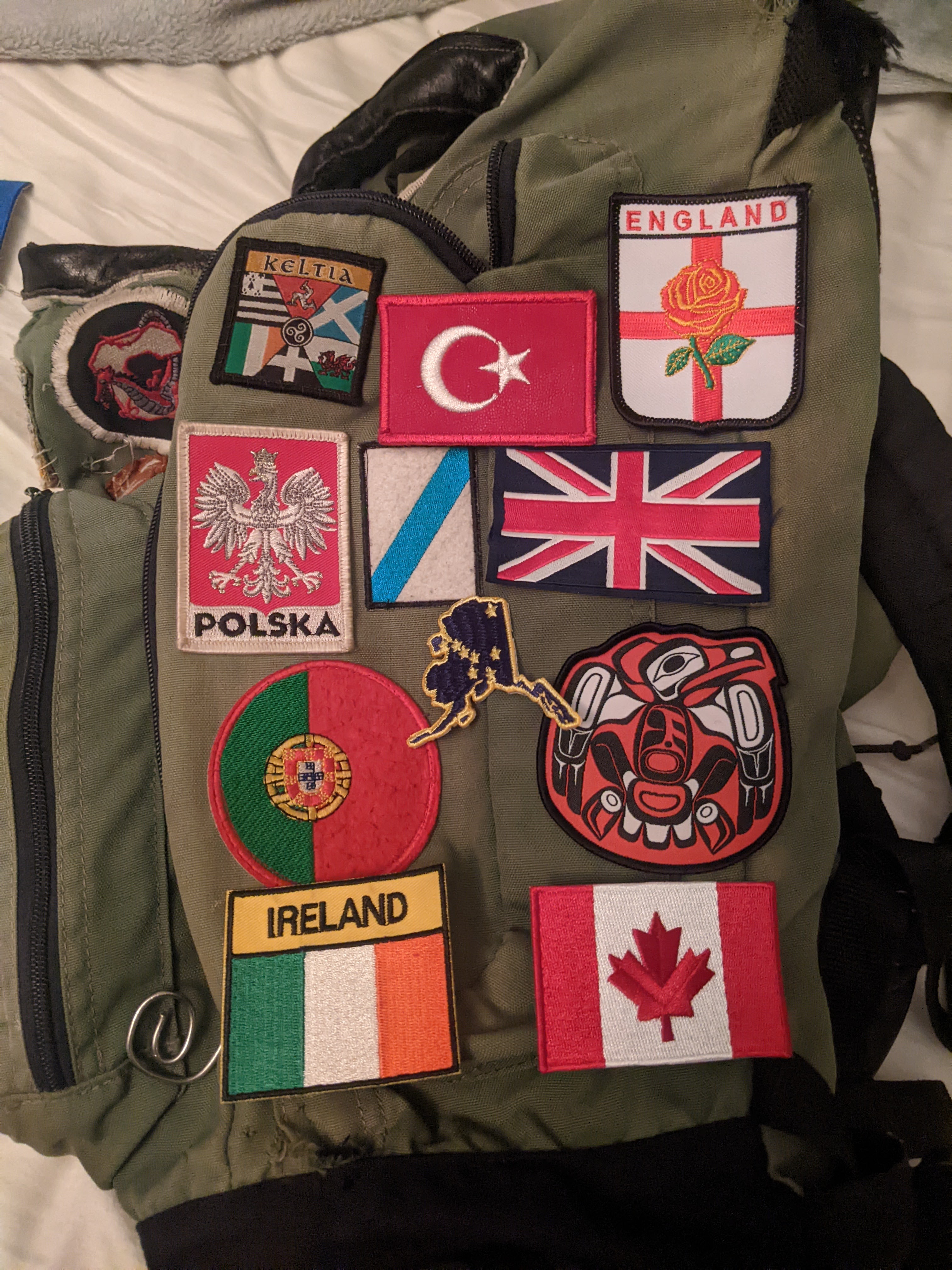 At this point, the zipper has failed (long ago) and I modded it into a drawstring style pack. I paid a very skilled seamstress in Krakow to completely redo the bottom to last another decade or so (hopefully) til the next repair. It’s mostly in great shape, but my plan now is to strategically strengthen it with the patches I add. I have incentive to rack up new countries as I work to shore it up for the next 20 years of what life will bring.